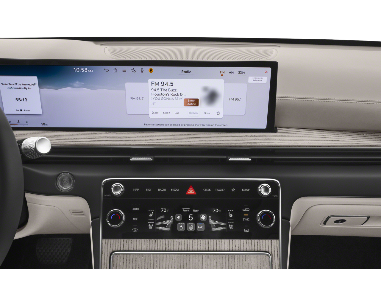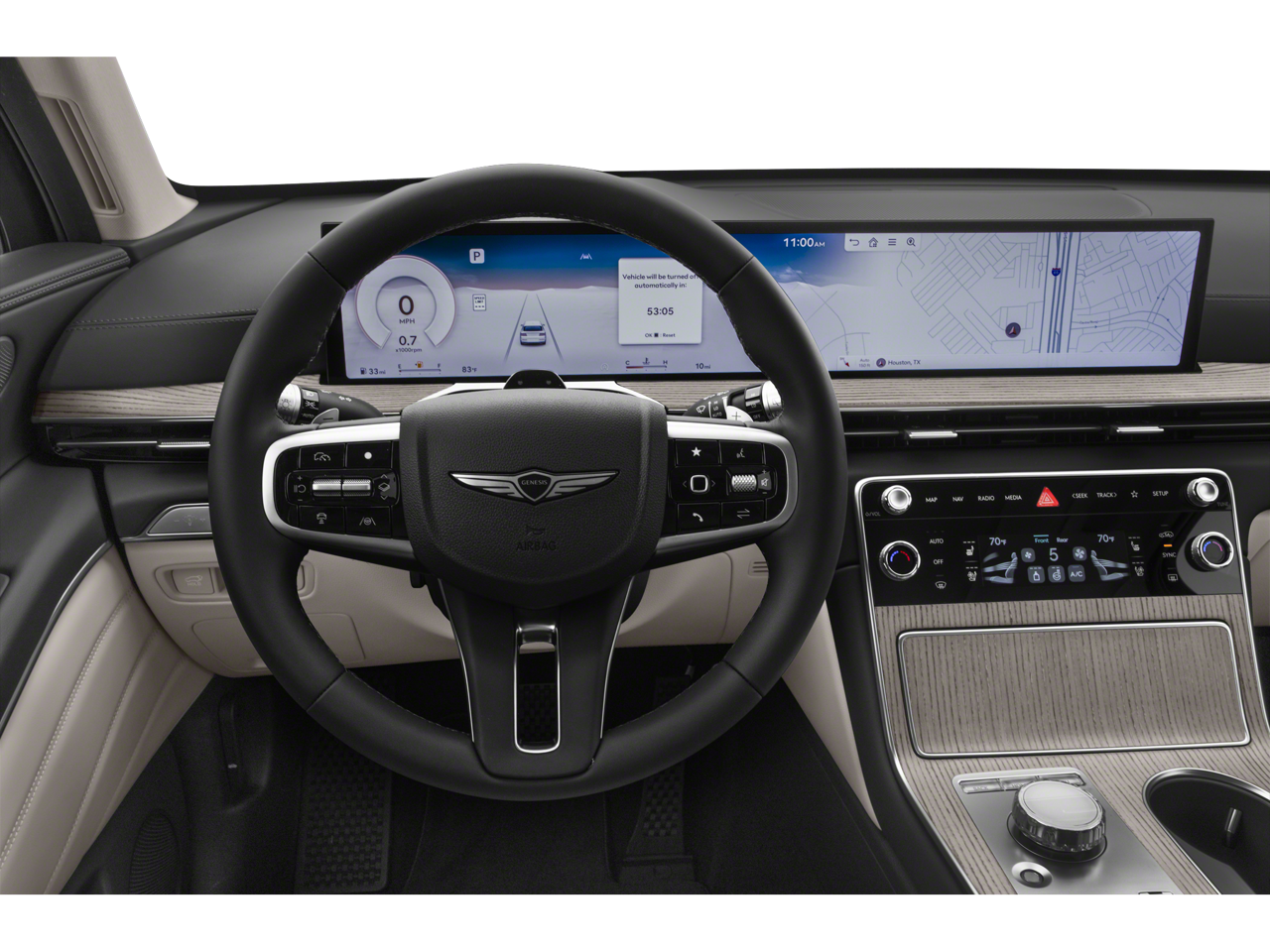 - Radio: AM/FM/SiriusXM/HD -inc: premium audio w/12 speakers, 27" integrated OLED instrument cluster and navigation system, SiriusXM Radio w/90-day subscription (not available in AK or HI), cloud connected platform (cloud profiles, connected routing, dynamic voice recognition, OTA updates), wireless Apple CarPlay, wireless Android Auto, Bluetooth hands-free phone system w/audio streaming, wireless phone charger, Wi-Fi hotspot, steering wheel controls, USB and Genesis Connected Services Wireless Apple CarPlay and wireless Android Auto are late availability.